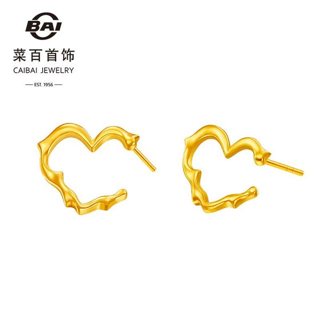 菜百首饰 足金耳饰 LOVIN恋意-心心恋5G闪耀金黄金桃心耳钉 女