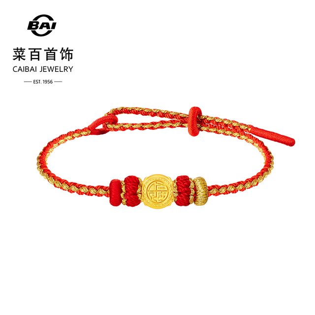 菜百首饰 足金福字转运珠配饰红绳吉祥