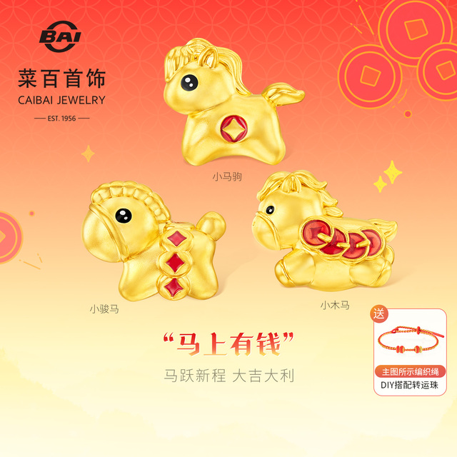 菜百首饰足金转运珠微硬金马上有钱转运珠国风生肖马diy串珠送绳