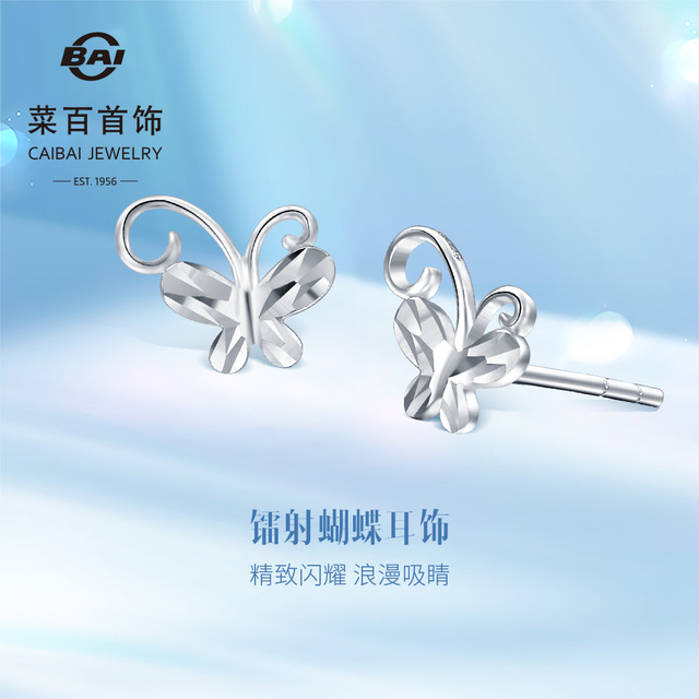 菜百首饰铂金Pt950镭射蝴蝶铂金耳钉女新款铂金潮流耳钉耳饰