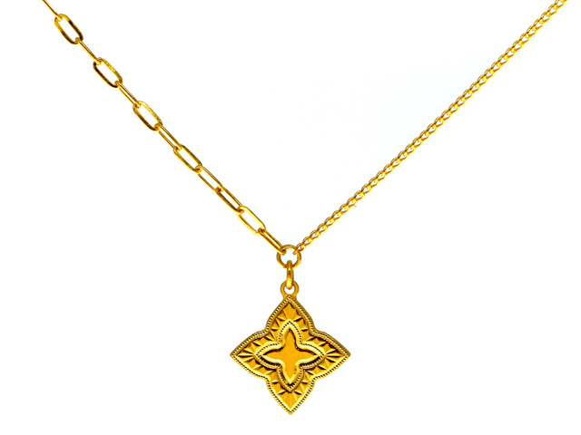 菜百首饰 黄金项链 足金高工精致小花造型链牌
