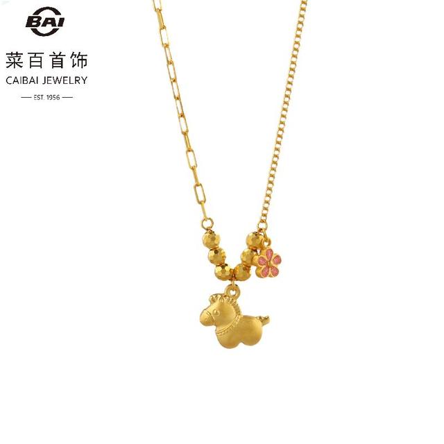 菜百首饰 黄金项链 足金鎏彩工艺马年链牌
