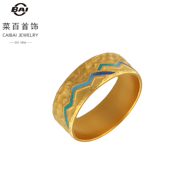 菜百首饰 黄金戒指 足金古法鎏彩工艺家和祥瑞系列 金韵青蓝男士戒指