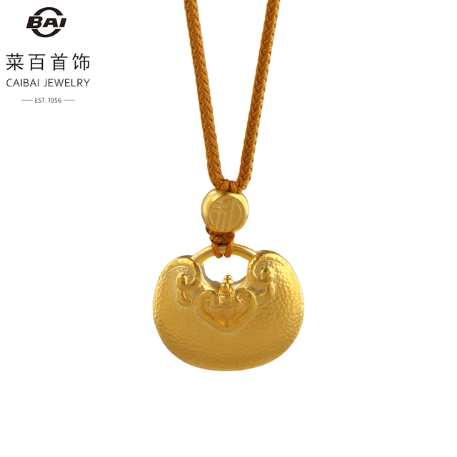 菜百首饰 黄金项坠 足金古法工艺家和祥瑞系列 如意锁项坠