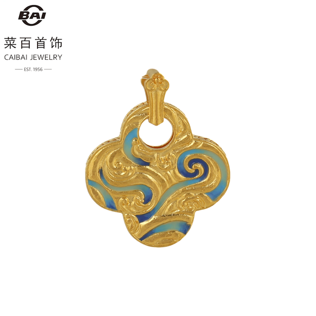 菜百首饰 足金项坠3D珐琅