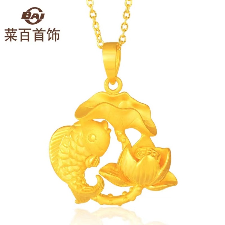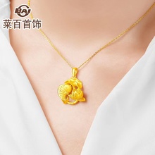 菜百首饰 足金饰品 古法黄金挂坠 如意