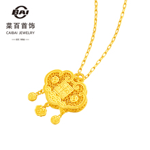 菜百首饰 吊坠足金如意锁“天官赐福”金项链黄金链牌福字金锁