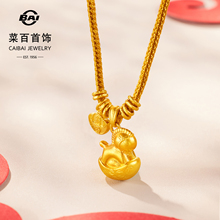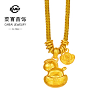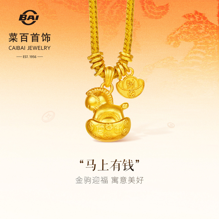 菜百首饰 黄金项链 足金古法“马上有钱”国风生肖马盘缠编织项链