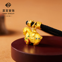 菜百足金项链古法黄金鎏彩生肖马编织绳项链国潮风唐马设计项链