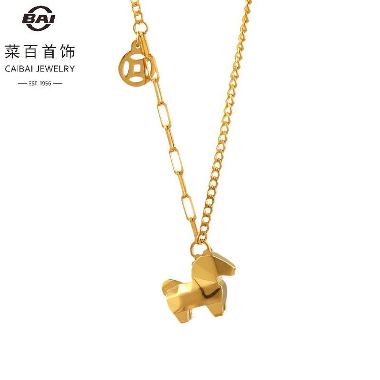菜百首饰 黄金项链 足金马年工艺链牌