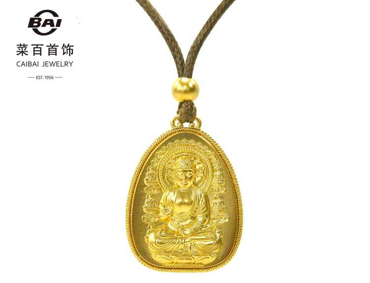 菜百首饰 足金链牌(古法錾刻-带绳-阿弥陀佛-狗猪)