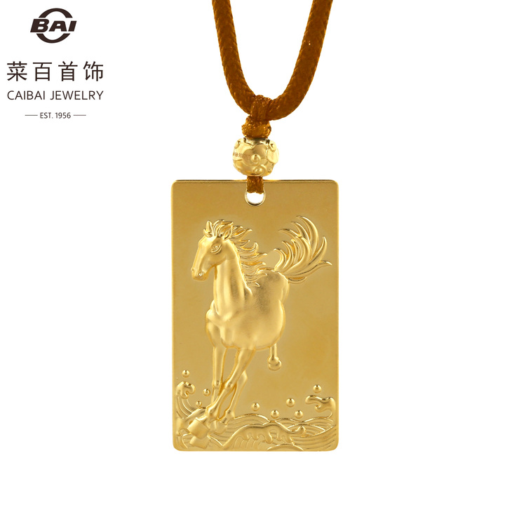 菜百首饰 足金链牌(古法带绳-马)