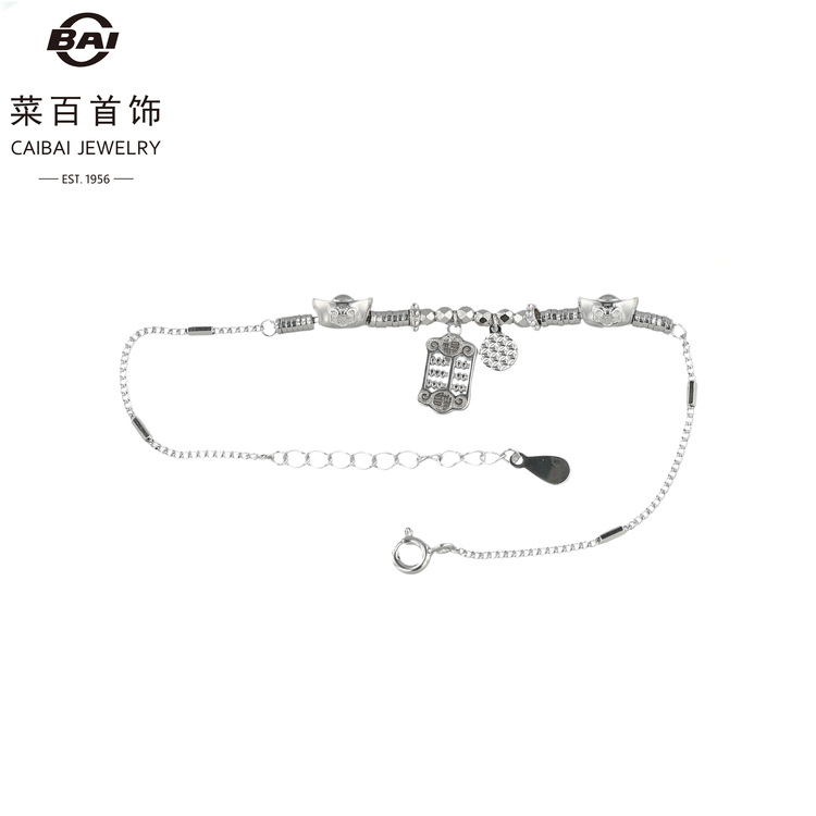 菜百首饰 银S925手链 算盘福字元宝配饰