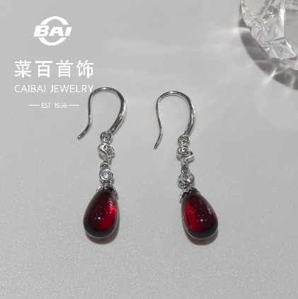 菜百首饰 银S925琥珀耳饰 配镶仿钻石