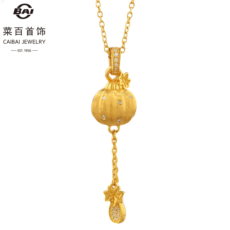 菜百首饰 黄金项链 硬足金四叶草造型链牌