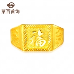 菜百首饰 黄金戒指 足金经典福字活圈戒指男款计价