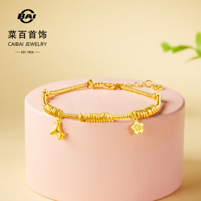 菜百足金手链国风“马上有钱花”黄金手链个性叠搭生肖马