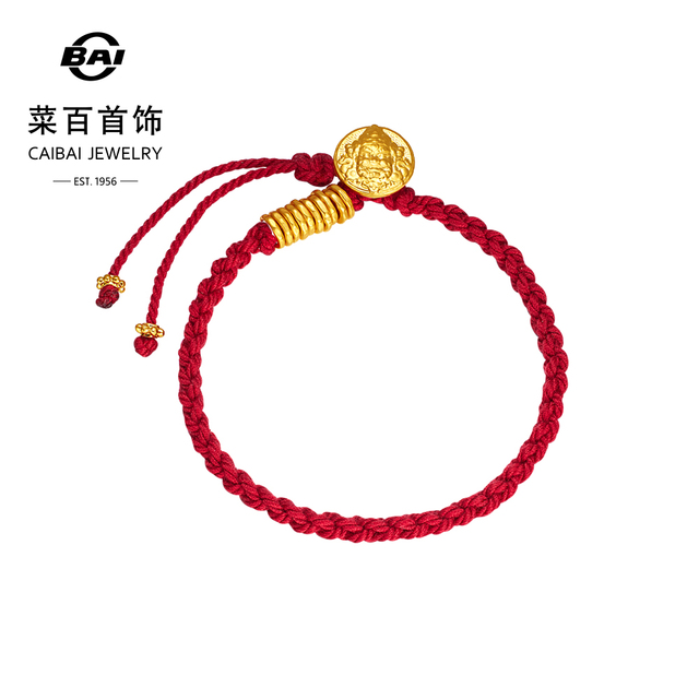 菜百首饰足金手链国潮风黄金盘缠黄财神红绳编织手链送礼物
