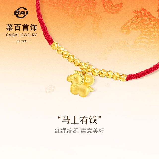 菜百首饰 黄金“马上有钱”编织项链时尚生肖马蹦迪珠红绳手链