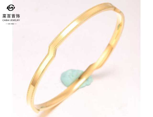 菜百首饰 黄金手镯 足金简约百搭素圈抛光手镯(单只)计价
