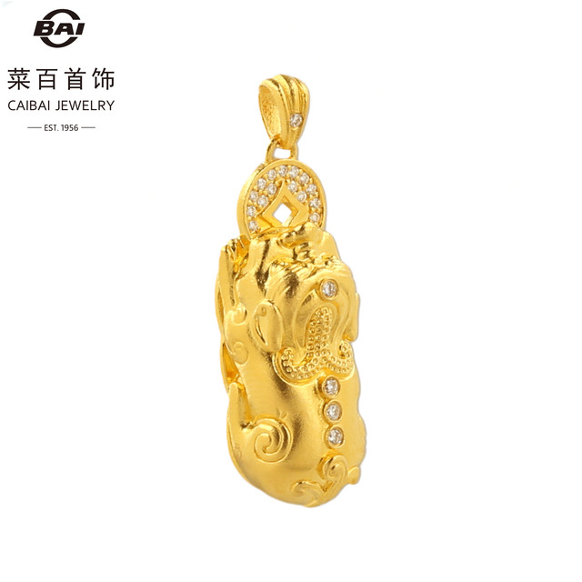 菜百首饰足金貔貅吊坠新款闪耀金咬钱貔貅项链坠百搭挂坠